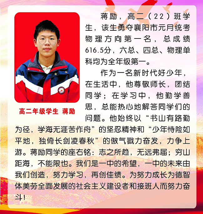 2023年2月上榜先鋒學生——蔣勵